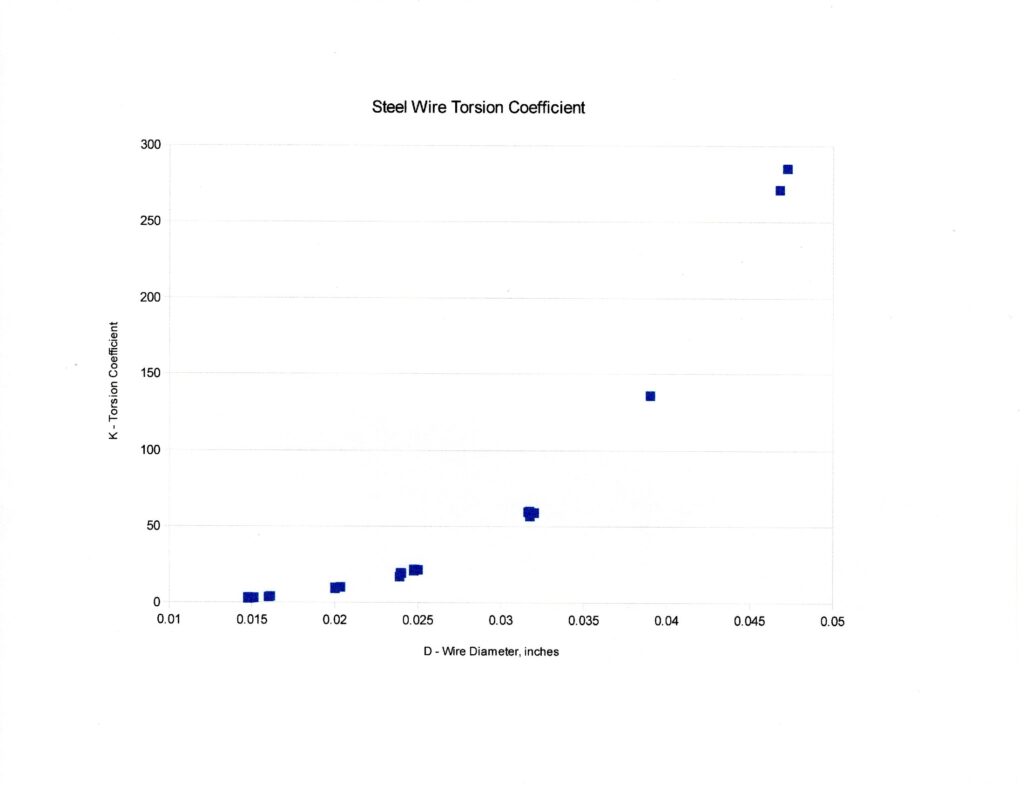 There is a strong relationship between K and D. In fact, K = 57,870,000 / D^4 is a more direct way to estimate the ratio of torque to deflection for wire of diameter D than the G equation.